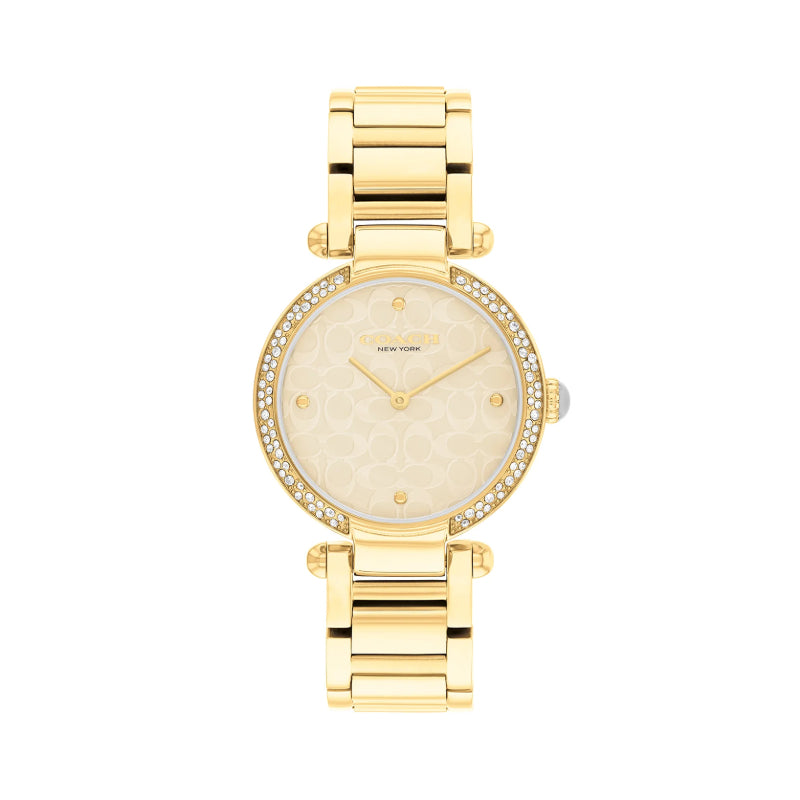 ساعة كوتش نسائي 34 بمينا ذهبي وحزام ستانلس ستيل