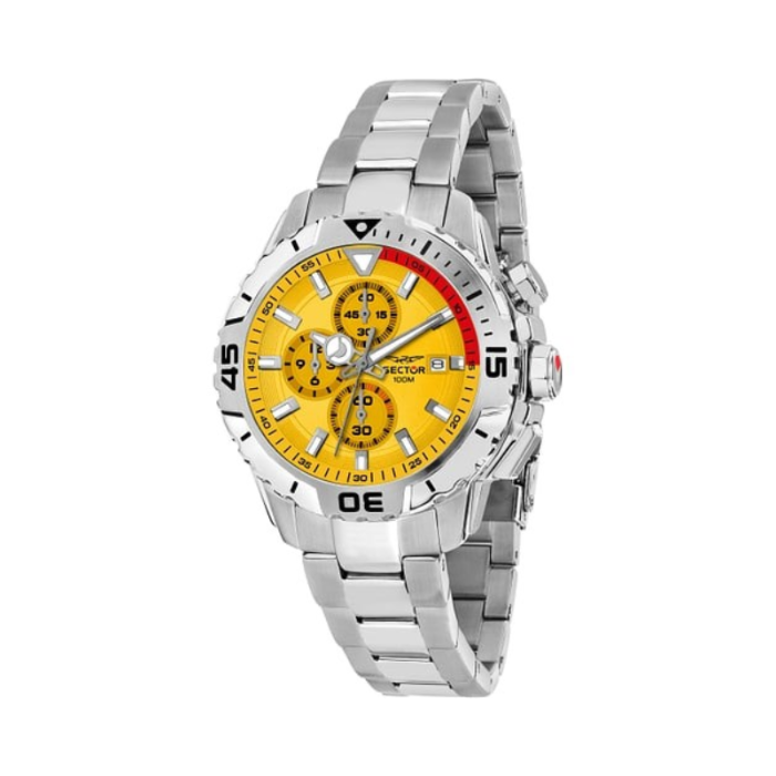 ساعة سيكتور رجالي 43 فضية بميناء صفراء